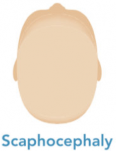 Bentuk kepala lonjong pipih atau relatif lebih panjang dibandingkan lebarnya (kombinasi dari Plagiocephaly dan Brachicephaly).