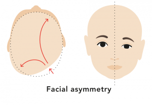 Pembentukan tengkorak kepala yang tidak normal dapat membuat bentuk muka menjadi tidak simetri seperti berikut: